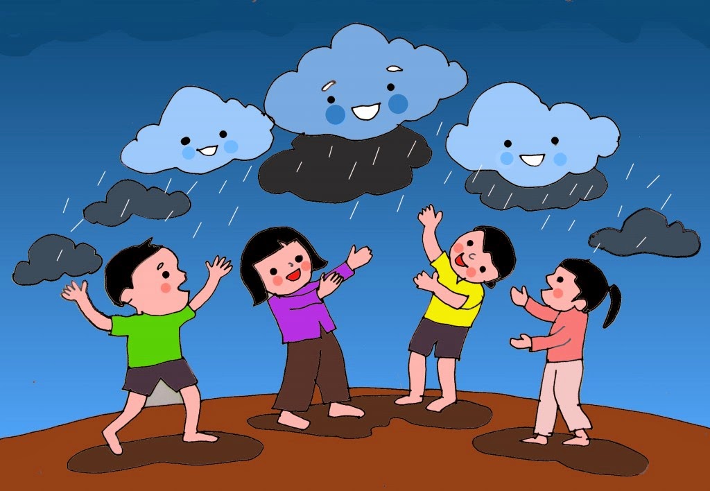 -    Chị đang bận rủ các bạn mây các nơi về làm mưa đây. Em có muốn làm mưa không?.
