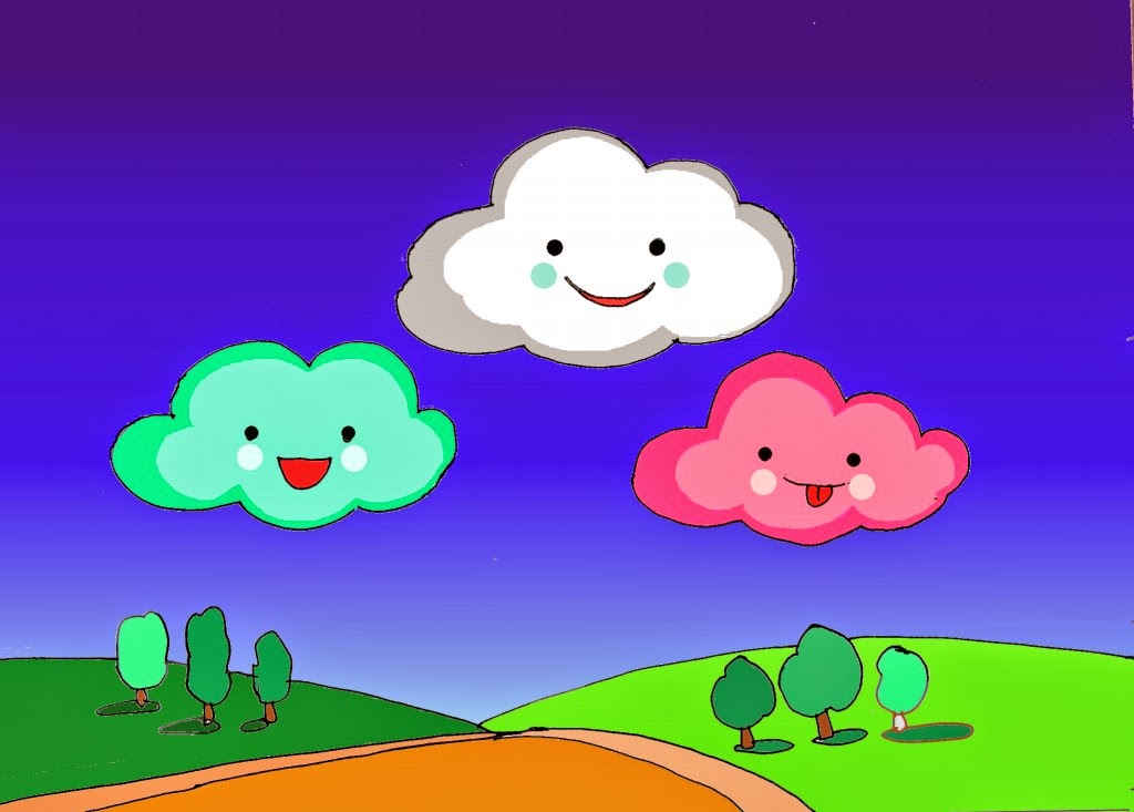 Trên trời có một đám mây xinh đẹp, khi thì cô mặc áo trắng như bông, khi thì cô mặc áo xanh biếc, lúc thì cô lại đổi áo màu hồng tươi.