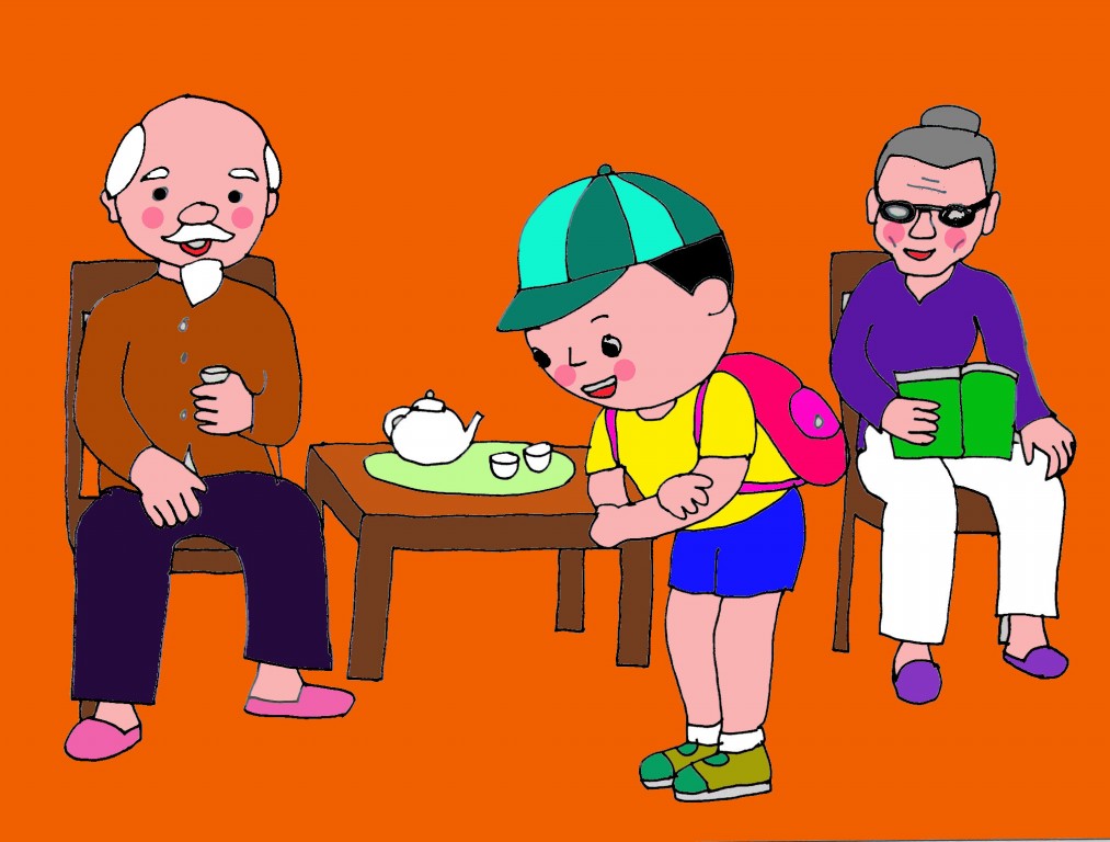 Biết cầm hai tay, cảm ơn, xin lổi.