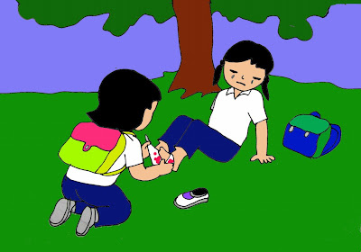 Một hôm trên đường đi học về, Linh giẫm phải một mãnh chai bên đường .Mảnh chai đã khiến chân Linh đau buốt .Em cố bước đi nhưng càng bước thì lại càng đau .Nhìn bạn rồi lại nhàn xung quanh , Trang chưa biết làm gì để giúp bạn .Trang cứ loay hoay bên bàn chân đầy máu của bạn .